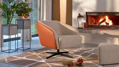 - Fauteuil pivotant | L80 x H74 x P83 cm | Bi-matière | Tissu Cloud Oat | Cuir New Nappa Caramel |