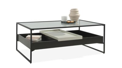 La table basse BIARRITZ mêle le pratique à la légèreté avec sa structure plaquée wengué ou chêne clair offrant plusieurs rangements et son plateau de service en laqué beige , le tout encadré par une fine structure métal laqué noir. Le plateau supérieur est en verre trempé. ...
