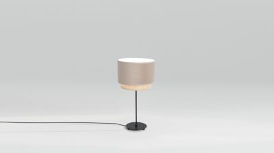 Base ronde en métal peint noirAbat-jour en raphia et velours Douille E27Vendu sans ampoule.