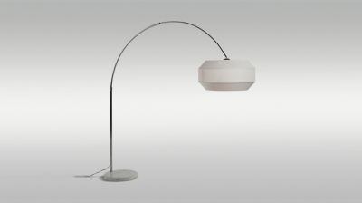 Lampadaire déporté base ronde en marbre et tige en métal chromé