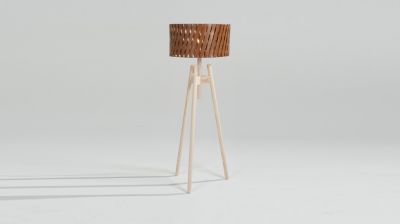 Lampadaire bicolore en bois naturel avec abat jour chocolat, existant aussi en laqué noir avec abat jour noir ...