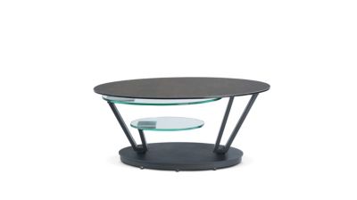 Cette table basse arbore un design contemporain où se mêlent textures et contrastes entre son plateau en céramique et le second en plateau en verre . Son système de plateau à rotation simultanée permet un gain d'espace tout en conservant le plus d'espace utile. Sa forme organique lui confère une allure fluide et moderne. ...