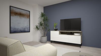 2 portes, 2 tiroirs et 1 niche avec petits supports tubulaires en métal noir