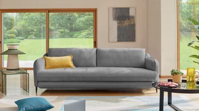 Particulièrement confortable de jour, le canapé-lit Jade se transforme en quelques secondes en un vrai lit adapté à un couchage quotidien grâce à son matelas confort Dunlopillo®. Son revêtement en microfibre est à la fois doux et résistant. Les piétements en métal ajoutent une touche moderne à ce convertible élégant et pratique. Transformez facilement votre salon en chambre d'amis grâce à son ouverture ultra rapide et profitez du confort du canapé-lit Jade. ...