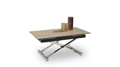 Châssis en métal chromé, dessus et allonge centrale en céramique 3mm sur verre trempé 8mm.