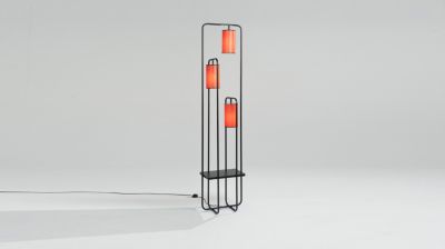Piètement en métal laqué noir avec 3 abat-jour coton brique