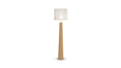 Lampadaire en bois certifié FSC.Abat-jour cylindre en lin et coton.Interrupteur au pied.E27 W40. ... Lire la suite Réduire le texte
