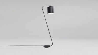 Piètement en métal laqué noir, et abat-jour coton noir