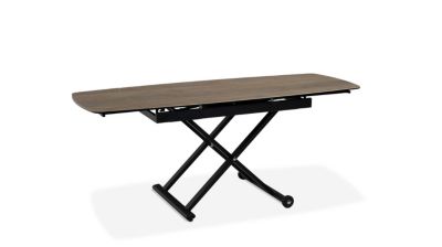 La table basse MOOVIE est extensible et relevable, pouvant ainsi servir de table de repas. Elle dispose également de roulettes ce qui facilitera son utilisation. Son plateau en céramique aspect chêne patiné lui donne un style design et décalé. ...